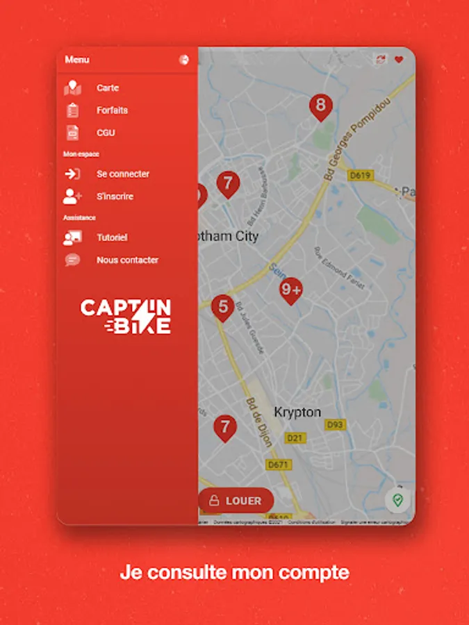 Mobile application dedicated to the “Captain Bike” service. Are you in Paris-Saclay? La Chantrerie in Nantes? No worries, download the app, choose your city and make your first rental.