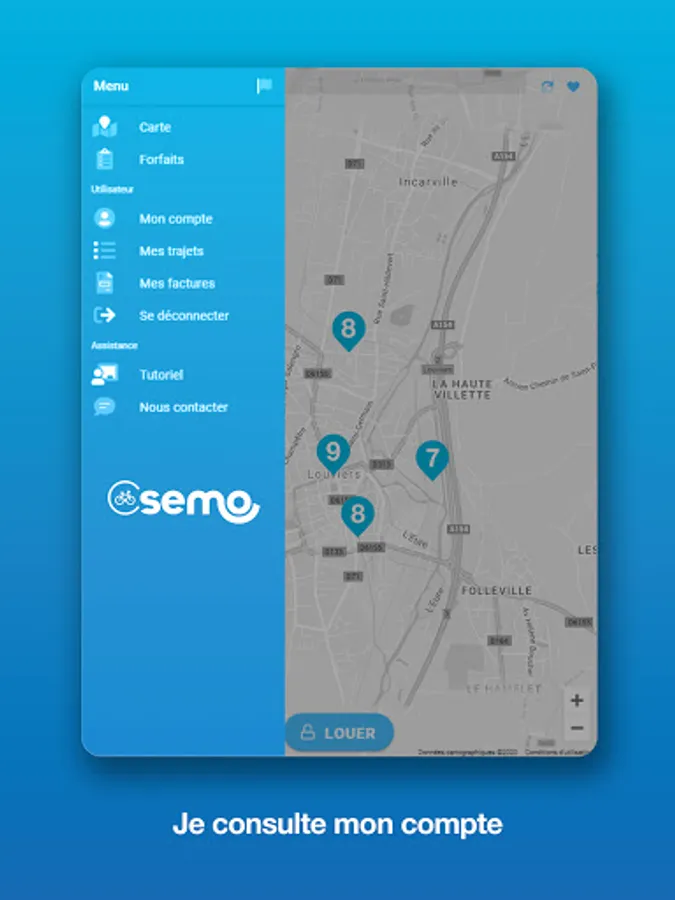 - Monthly at 7 € (5 € for semo bus subscribers) with 30 minutes offered per rental then 0.03 € / min