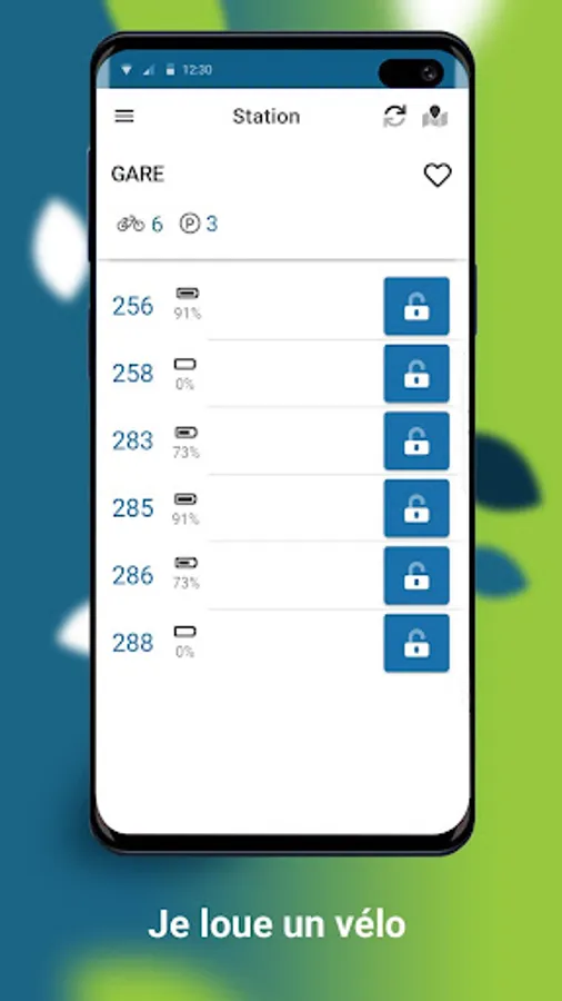 - Click, in the application, on the number of the bike you want to use