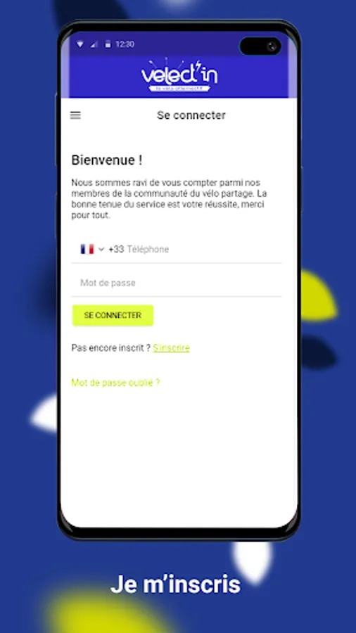 This mobile application is dedicated to the service: Velect'in - Electric self-service bicycle