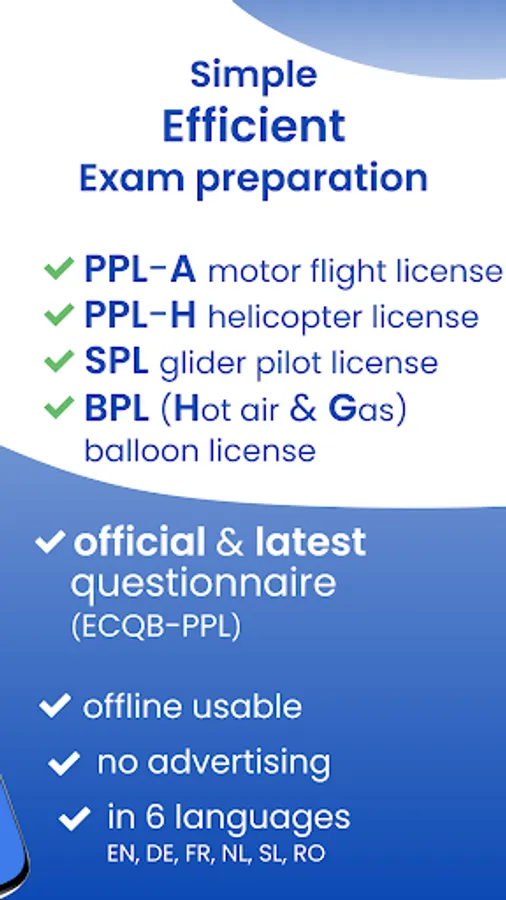 We have made it our business to help you quickly master the theory exam for your PPL-A, PPL-H, SPL or BPL. For this we rely on supporting you with a modern app.