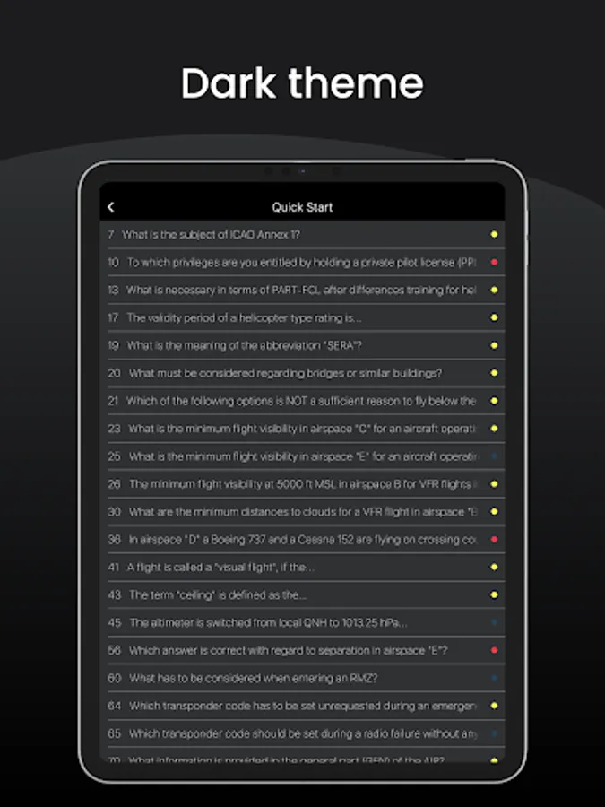 Keep the full overview in the learning mode and learn all official questions based on a modern traffic light system for your Aviation License.