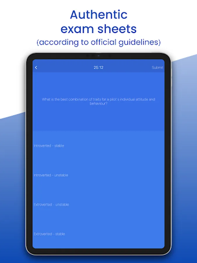 For optimal preparation for the exam, the built-in exam mode in PPL: Pilot Aviation License is based on the official theory exams. So nothing can go wrong with your PPL, SPL or BPL exam.