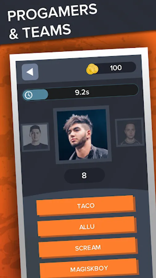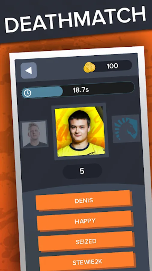 In this mode you guess esports players and teams. You have 60 seconds to get as many correct answers as possible. When you give wrong answer, you will lose 5 seconds of your time bank.