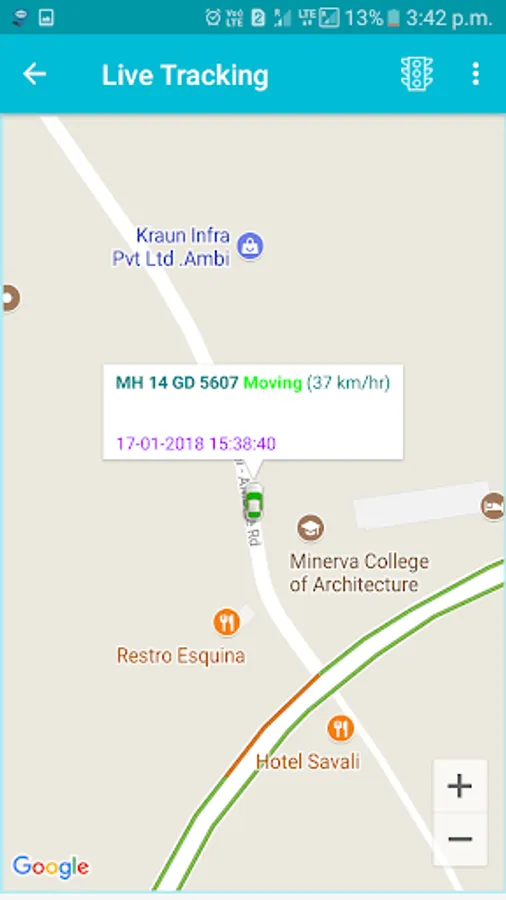 1) First of all please make sure internet connectivity is available while using app inorder to see the live vehicle track.