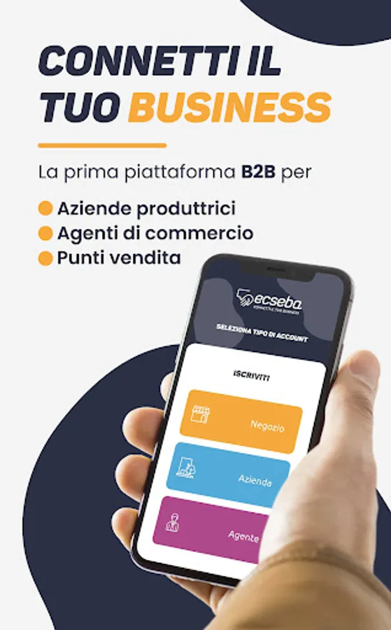 La prima piattaforma B2B esclusiva per Aziende produttrici, Agenti di commercio e Punti vendita. Grazie ad Ecseba potrai entrare in contatto con la tua rete commerciale ampliandola e ottimizzandola o cercare il prodotto più adatto alla tua rete di clientela attraverso annunci di domanda e offerta. Connetti il tuo business.