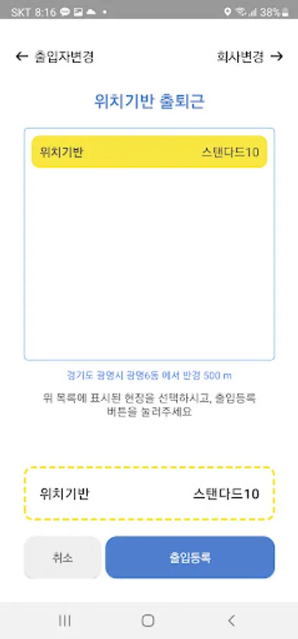 2. If you select a site and touch the access registration button, it is immediately reflected in the work report.