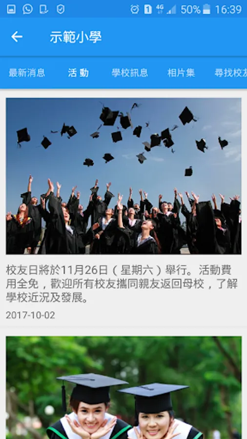 - Schools can use the APP to send push messages, the latest news delivered to alumni