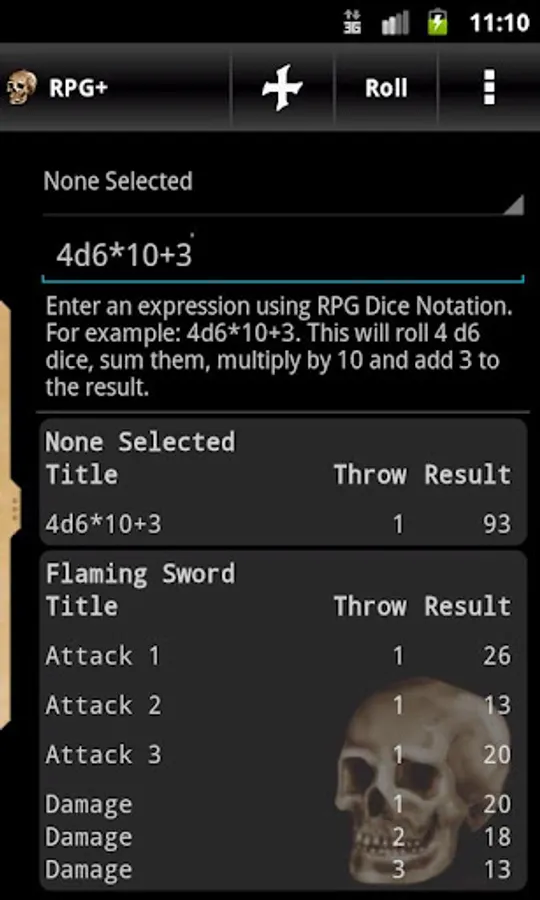 Enter a formula in RPG Dice Notation to handle those complicated scenarios where rolling a number of d6 just doesn't cut it. Now you can define powerful expressions allowing you to mix various dice together, multiply, add, or subtract their result in almost any way you need.