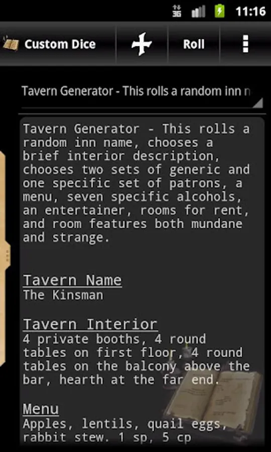 This is ideal for those gamers who are constantly using random generation charts. Some great examples submitted by our users include: Tavern Generator, Pick Pocket Yield, NPC Encounter Conditions, Corpse or Bag Yield, and more.