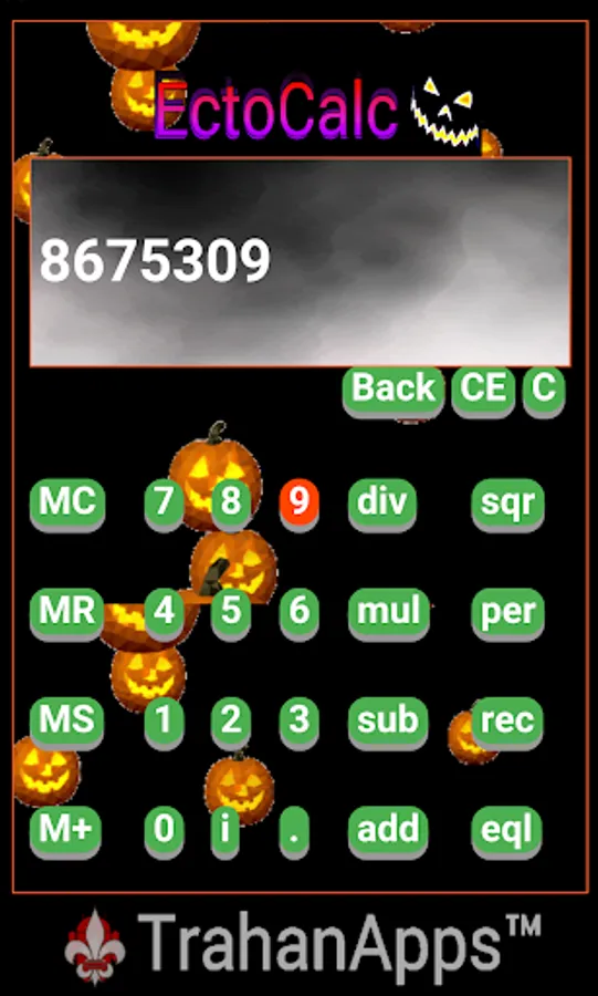 Has animated backgrounds with pumpkins that fly up into the air as a friendly ghost greets you!