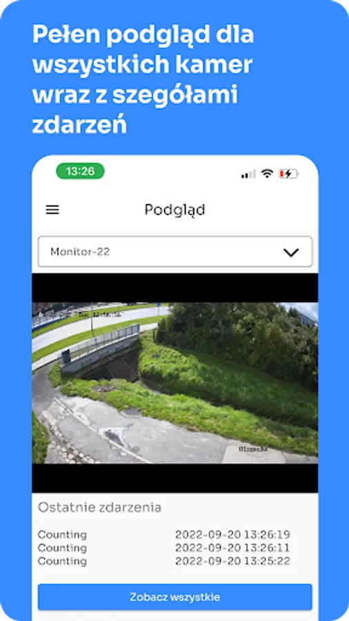 Thanks to the application, you will have a preview of several screens at the same time. You will also see a list of events for individual cameras