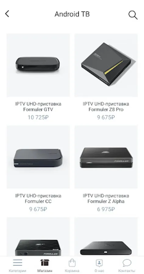 Products from renowned companies such as Formuler, HD BOX, Homatics, Openbox and Infomir are available.