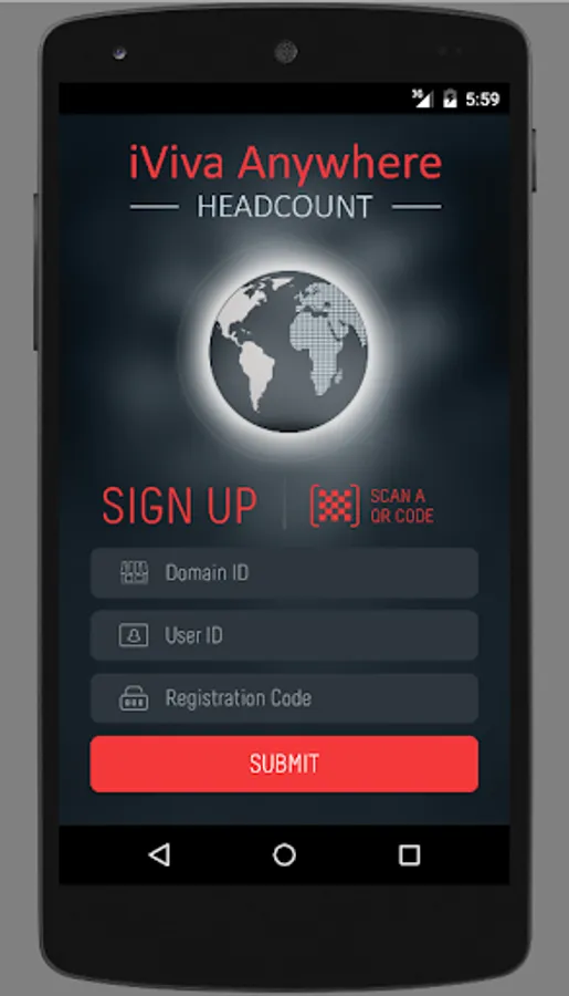 The App needs to be registered with iVIvaCloud installation by entering “Domain ID”, “User ID” and “Registration Code” supplied by the System Administrator of your iVivaCloud installation.