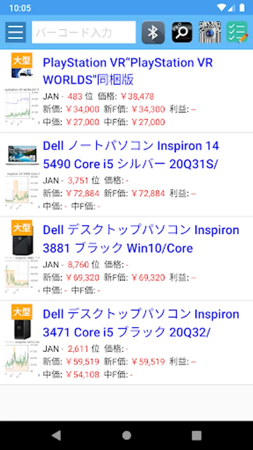 ・ Search by scanning the barcode of the product with the camera or Bluetooth input