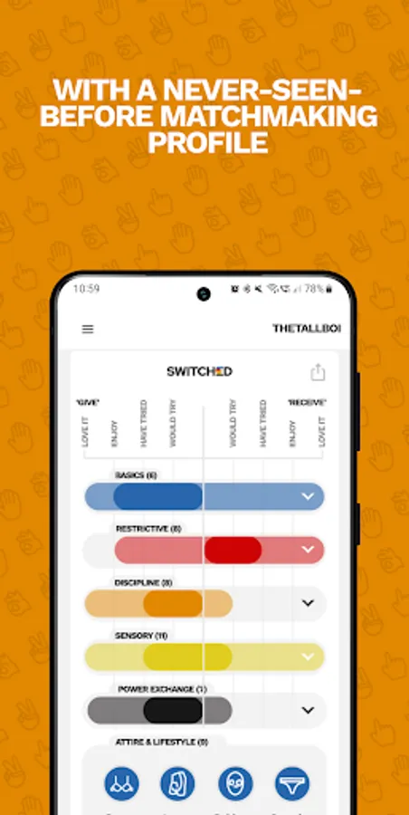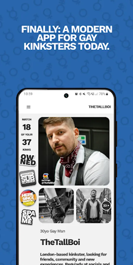Switched is a brand new social network with matchmaking for gay kinksters. We want to change how kinky people connect, socialise, and create lifelong experiences (and even find love!), all while offering a modern design and functionality to fully express their kinks.