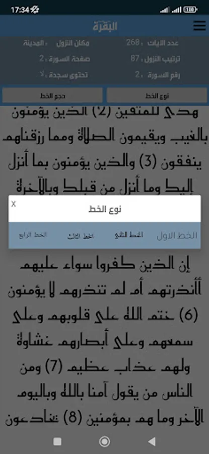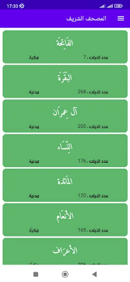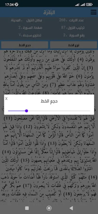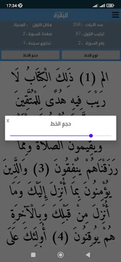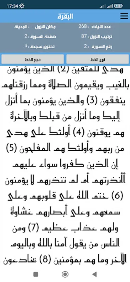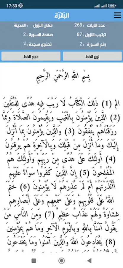 The Noble Qur’an is the word of God in a clear font that can be enlarged and reduced according to the need, in addition to details for each surah, as it shows you the following with each surah: