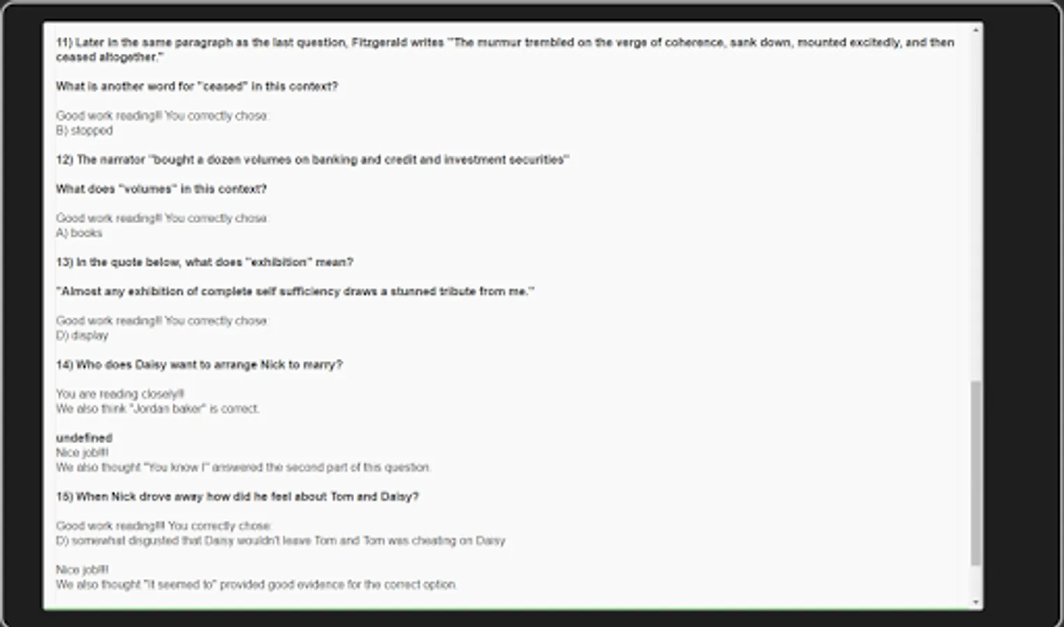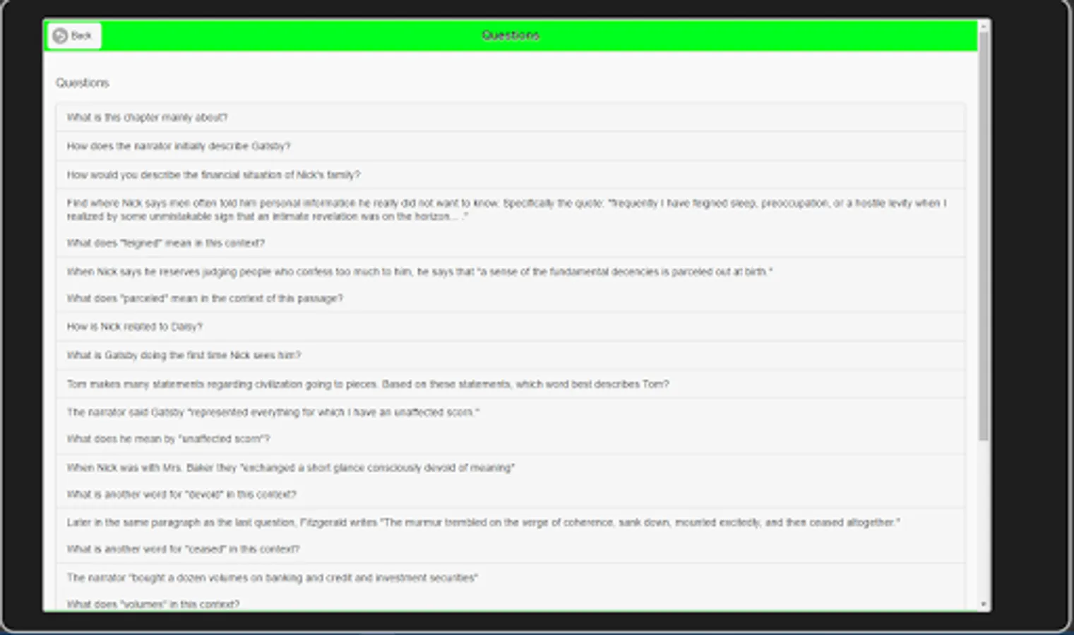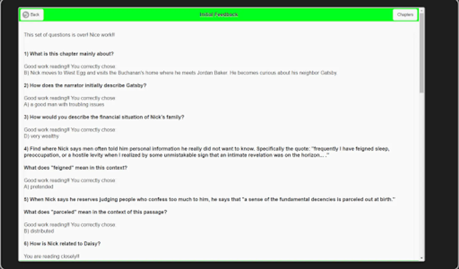 Help your student enjoy reading! This app captures the engaging tale of The Great Gatsby to help your student better understand the text. edMe Reading Companion apps use proven reading instruction to help your student get the most out of the books they choose to read. This app asks students questions that reinforce the main idea of each chapter as well as important details for understanding The Great Gatsby(TM).