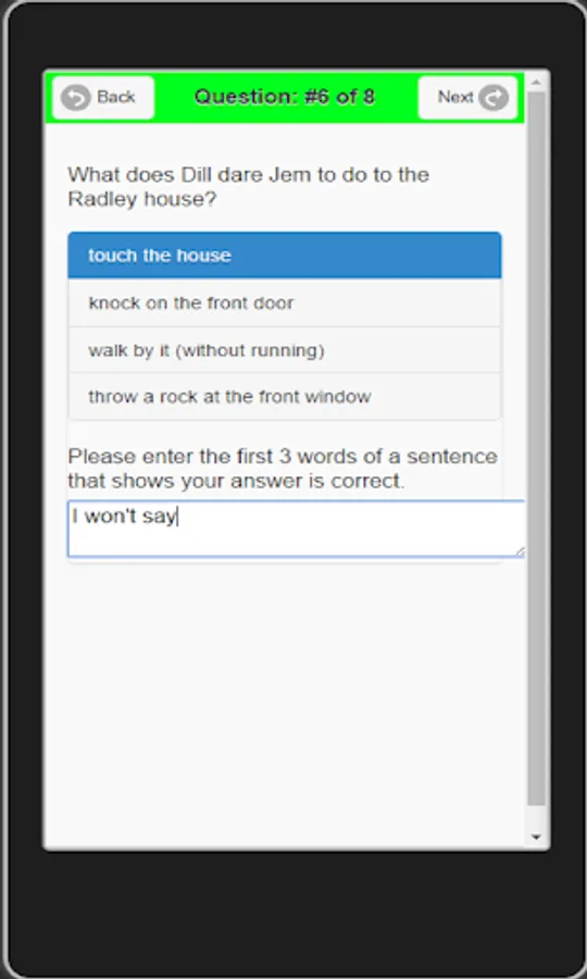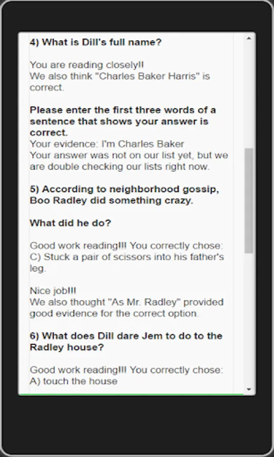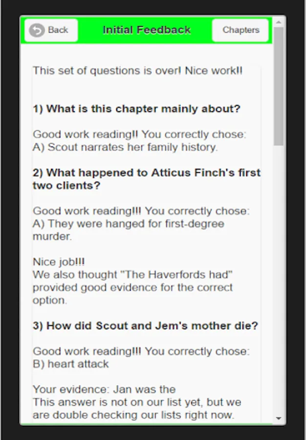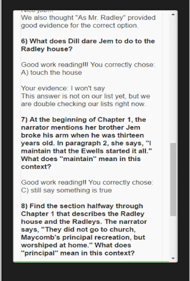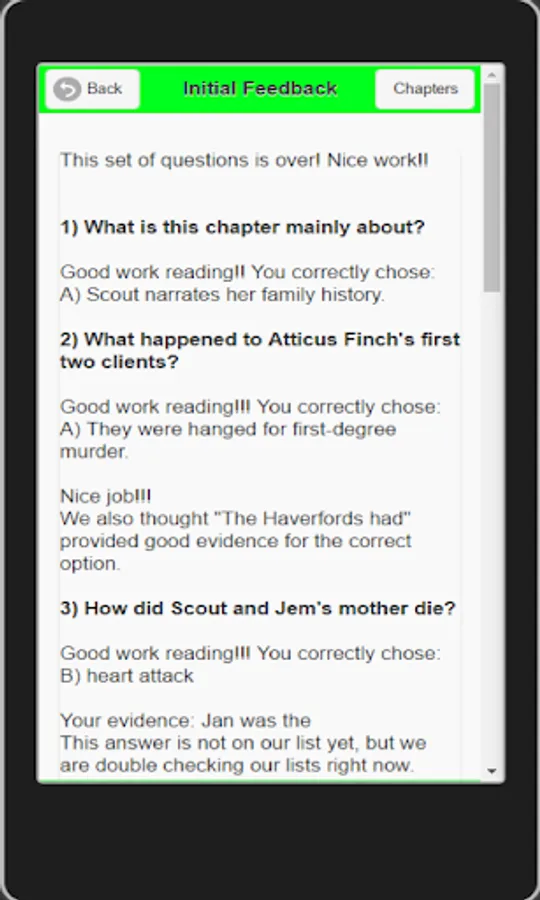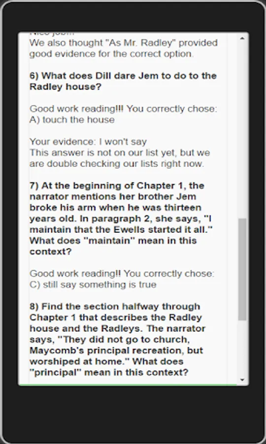 Help your student enjoy reading! This app captures the intrigue and helps students better understand the American classic, To Kill a Mockingbird(TM). edMe Reading Companion apps use proven reading instruction to help your student get the most out of the books they choose to read. This app asks students questions that reinforce the main idea of each chapter as well as important details for understanding To Kill a Mockingbird(TM).