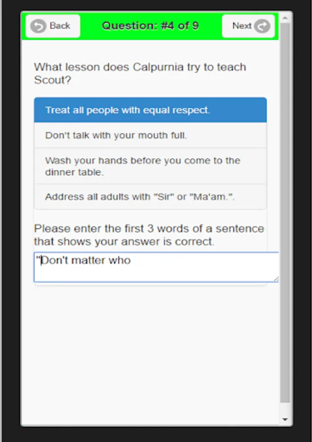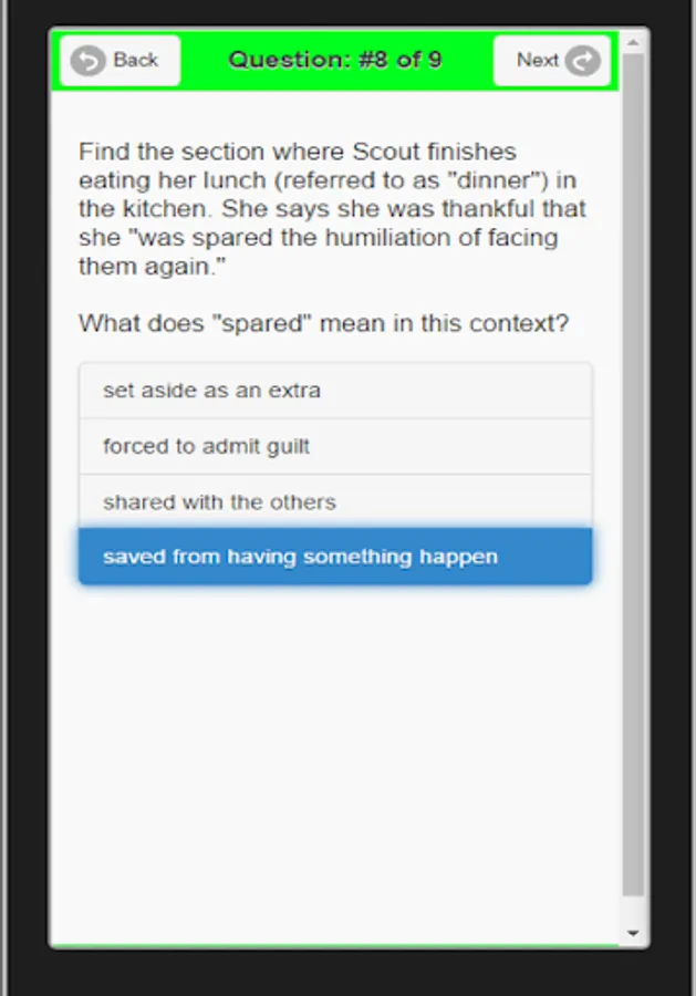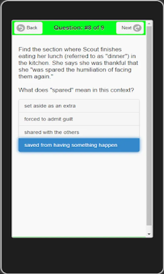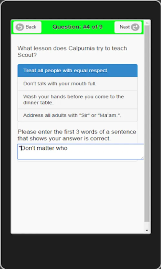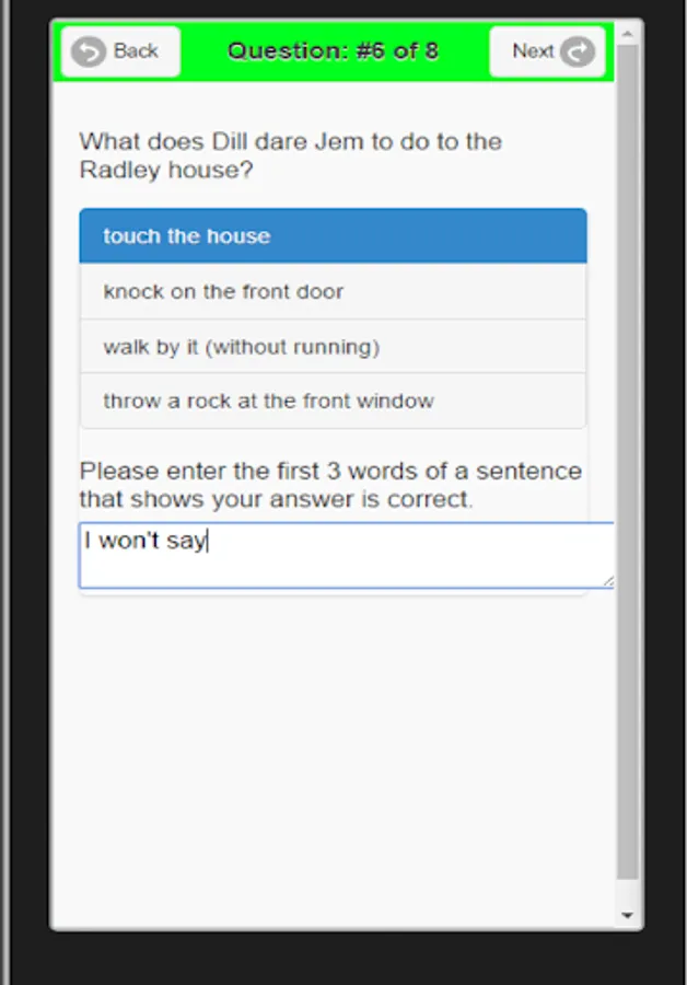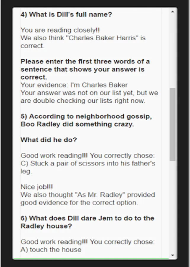 Help your student enjoy reading! This app captures the intrigue and helps students better understand the American classic, To Kill a Mockingbird(TM). edMe Reading Companion apps use proven reading instruction to help your student get the most out of the books they choose to read. This app asks students questions that reinforce the main idea of each chapter as well as important details for understanding To Kill a Mockingbird(TM).