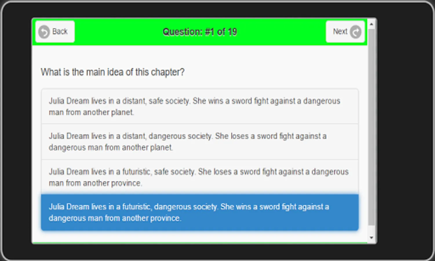 This book is enhanced with edMe's Literacy platform. At the end of every chapter, high-quality reading questions give students the opportunity to hone understand and practice reading comprehension skills.