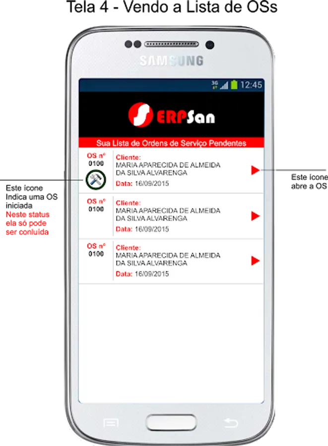 - Start and end of the implementation of OS to send the ERPSan automatically, including instances and up to 3 photos.