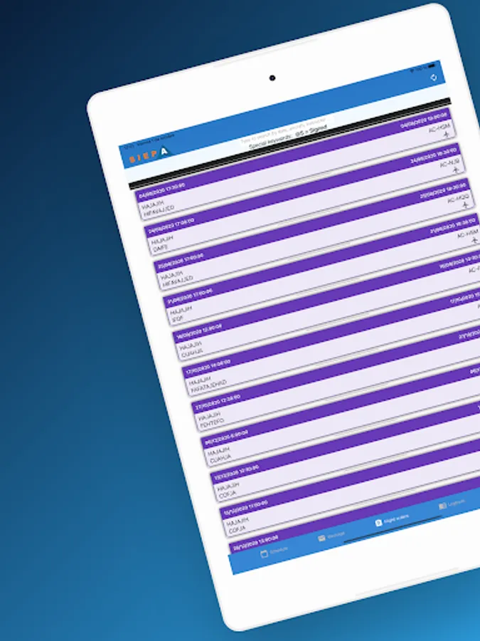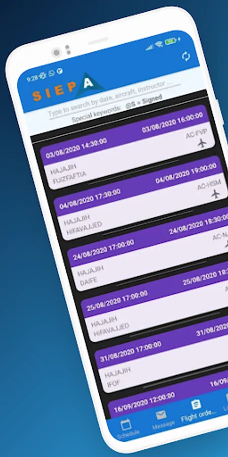 With the new SIEPA application you will have at your fingertips the schedules of your activities, as well as messages, flight orders, logbook, statistics, ...