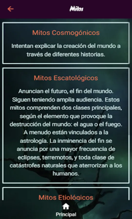 In this application you will find a definition and classification of myths and legends and examples of each of the categories.