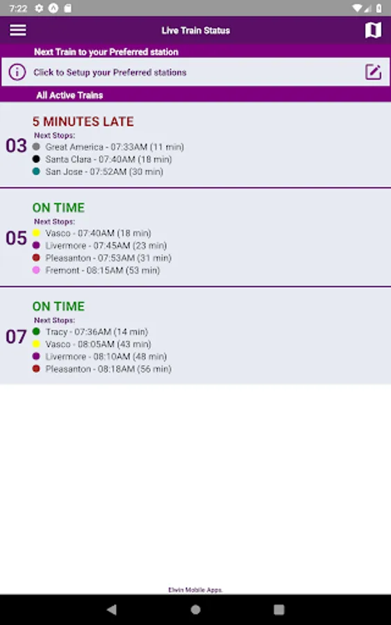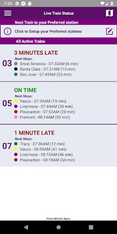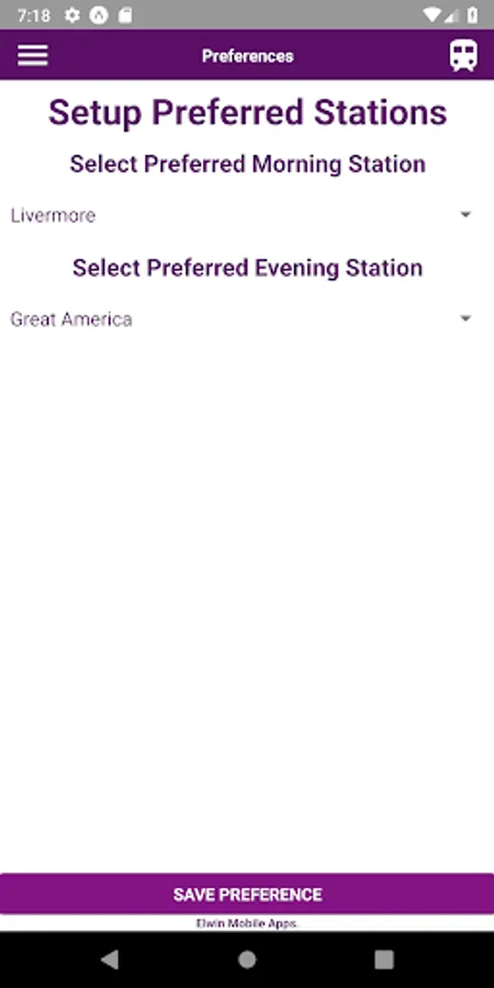 3) Station Preference, once selected you will be able to see the time the next ACE train will take to reach your station on the top so you dont have to go though the full list to find the time for next train arrival.