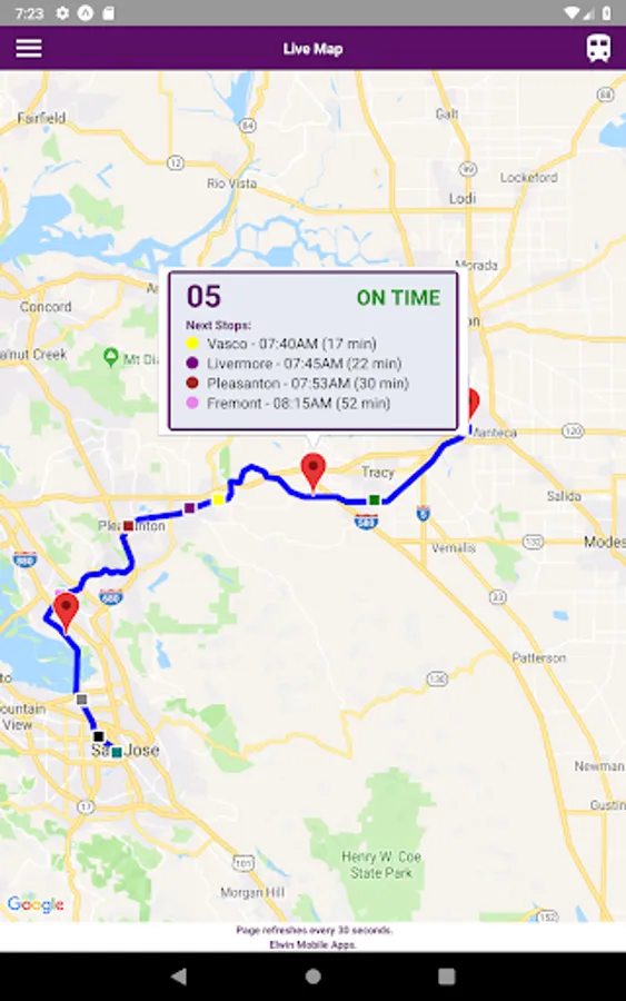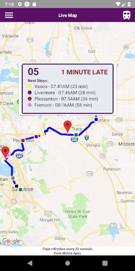 b) LIVE MAP (This page will be refreshed every 30 seconds), user can click on the markers to check the Live train status.