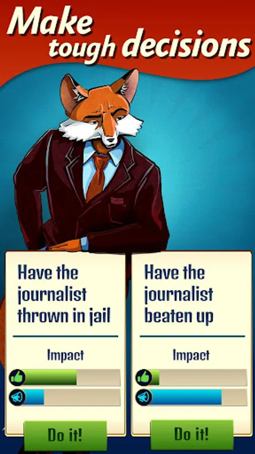 Plan your own Machiavellian rise from political nobody to Head of State. Build your ideology picking policies as you see fit, not forgetting to include plenty of crowd pleasers. As your support grows, make sure to cozy up to all the right people: the Police, the Church and anyone else with power. After all, once you take power, you don't want anyone taking it back!