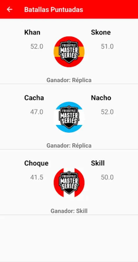 The best freestylers in the world are available, you can score battles of Papo, MKS, Klan, Dtoke, Nacho, Sub, Teorema, Ricto, Stigma, Gazir, Sweetpain, Mr. Ego, El Minor, Jota, Jaze, Shock, among many other top-level competitors.