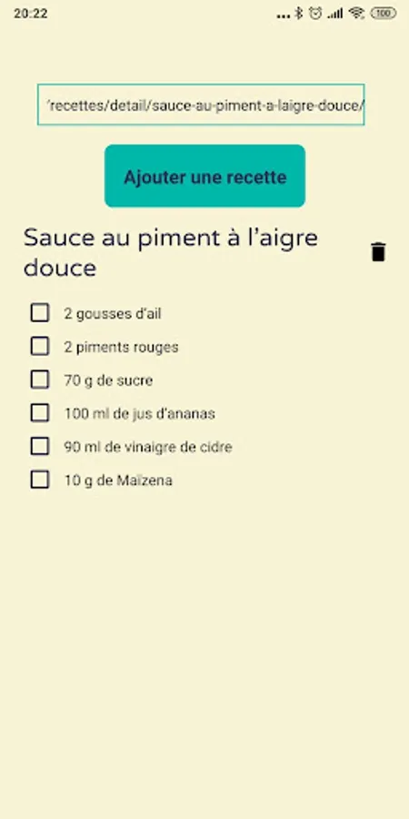 Copy the address of a recipe page and press the button to add the ingredient list to the app.
