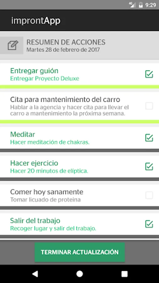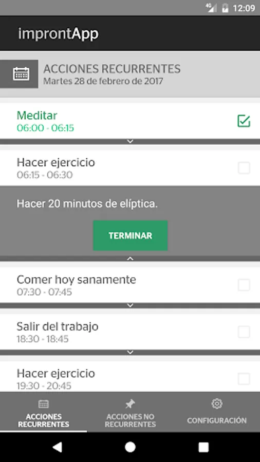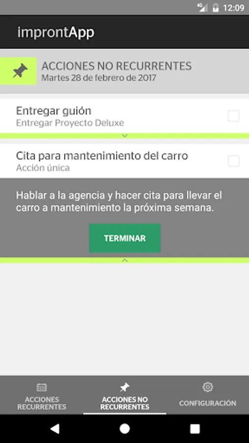ImprontApp is a complement to an online platform where users create and schedule their actions, and, it is a viewer for the actions with a checklist functionality and a reminder system.