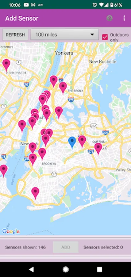 Select sensors to be monitored from a Google Map. Sensor ID required only for private sensors.