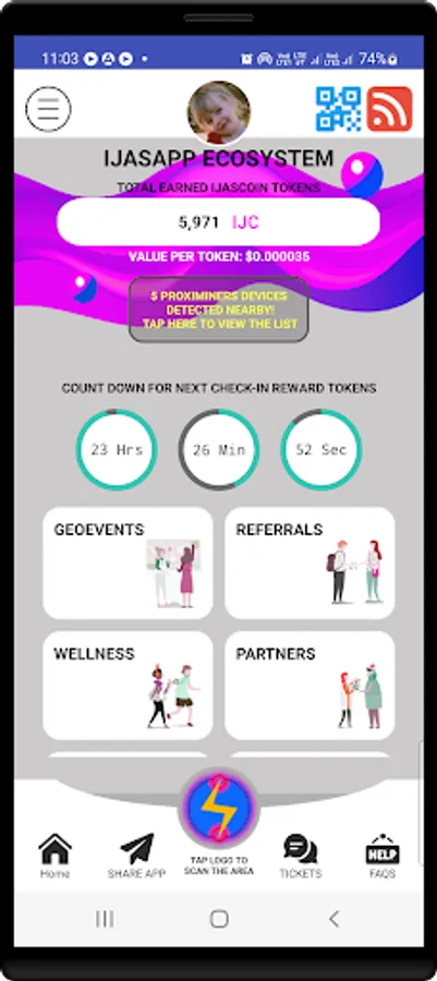 5) Wellness feature to track steps, calories burned, distance, and earn IJC FREE Utility Tokens.