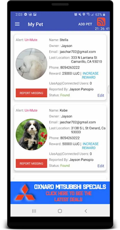 3) Help Pet community by scanning area for lost pets and be rewarded.