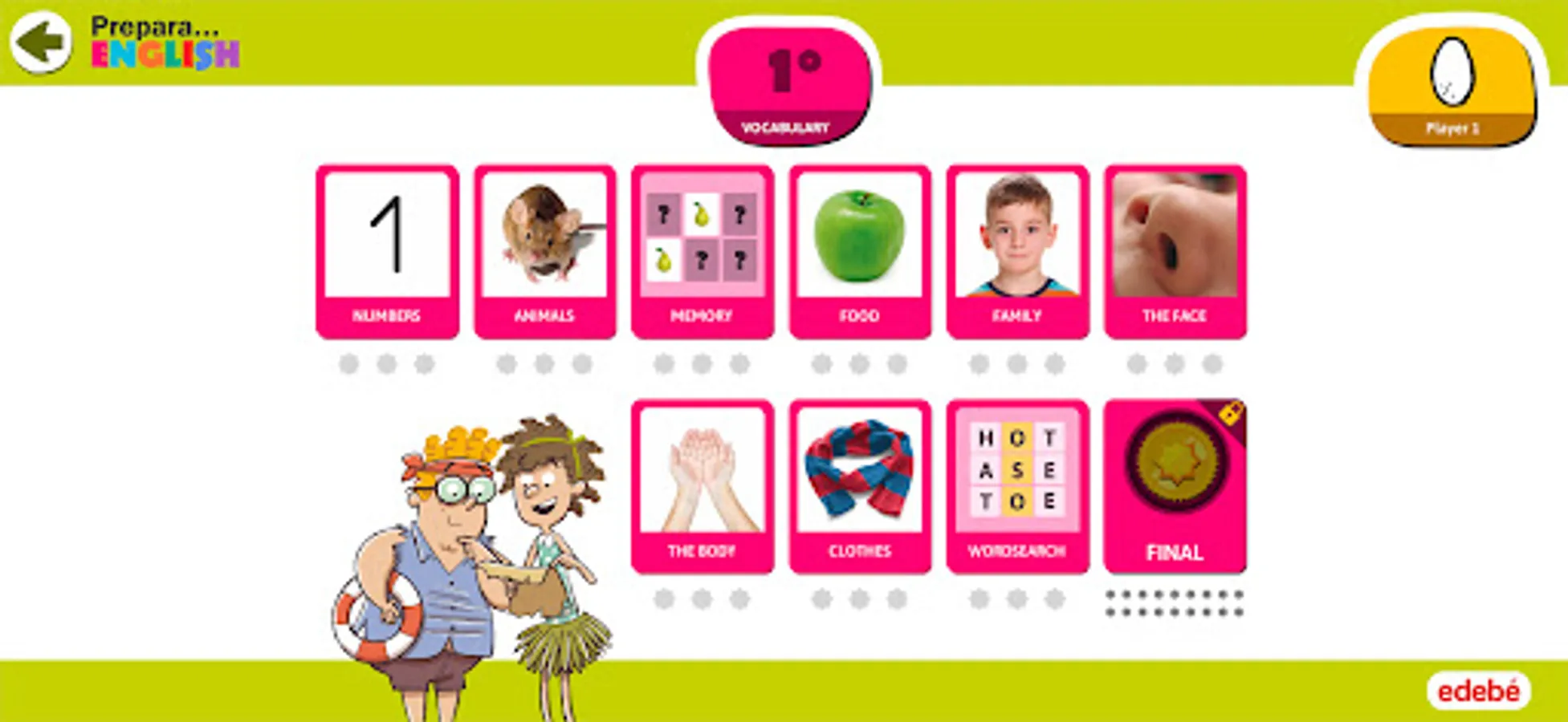 The Prepara English application is designed to complement the English reinforcement materials in the Prepara notebooks for the six primary courses and 1st year of ESO, with fun vocabulary games and activities with English phrases, to practice correct pronunciation and improve the command of the language in the most entertaining way.