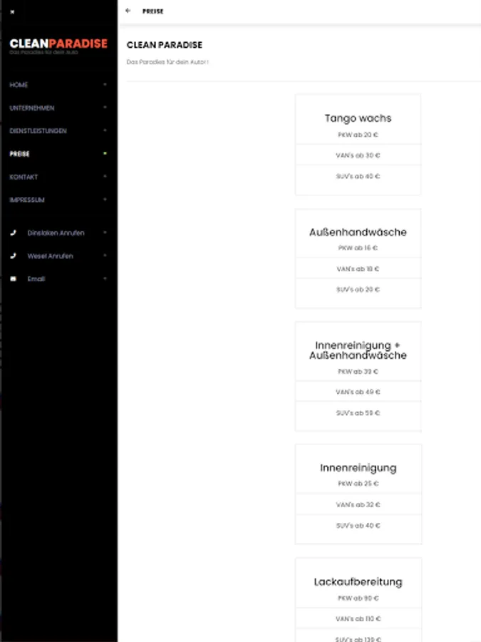 With our services for your vehicle, we can provide you with extensive and competent support. Regardless of whether you have smaller or larger concerns - Clean Paradise offers you exactly what you and your vehicle need. With the latest technology and tools, we reliably carry out our work on and with all vehicle models, guarantee you low prices and consistently qualified advice.