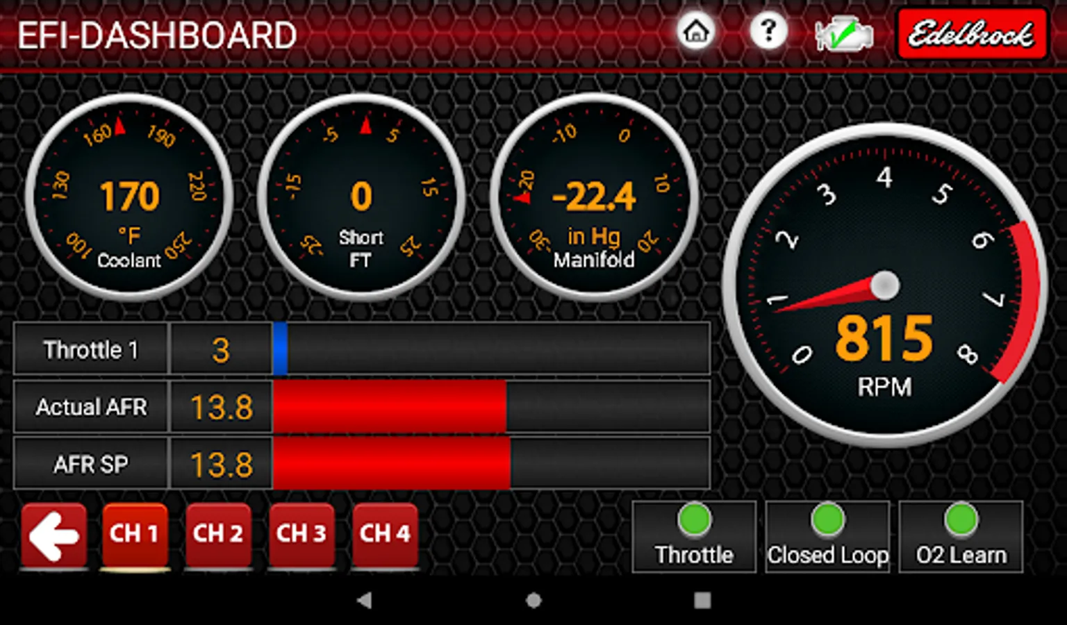 E-Tuner 4 Plus Edelbrock's latest exclusive Android app for the Pro-Flo 4 Plus EFI System.