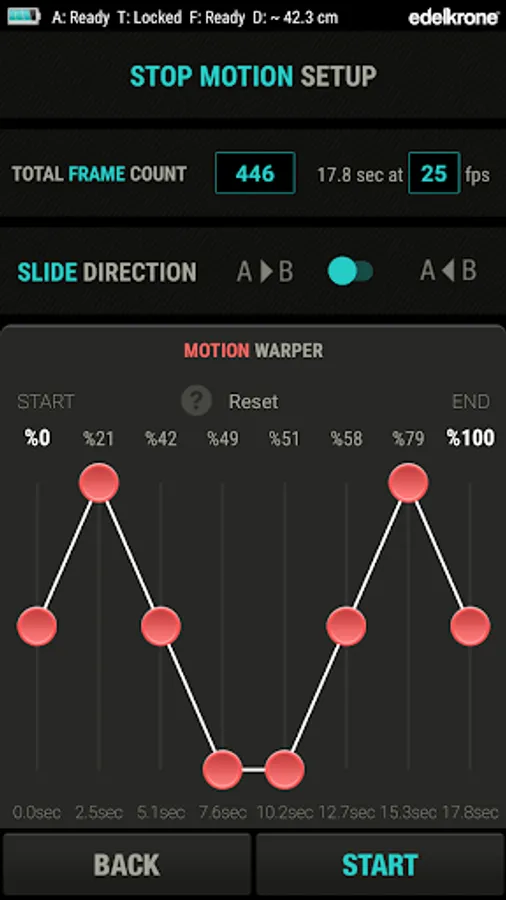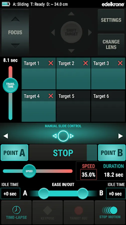 Motion Kit App for edelkrone's SliderPLUS: Bluetooth connected, mobile app controlled 4-Axis motion controller for slide, time-lapse, stop motion filming and more.