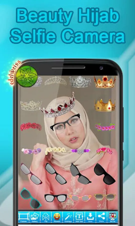 4. There are many stickers are suitable for the hijab, such as a crown, flower crowns, glasses, and other accessories for beauty hijab.