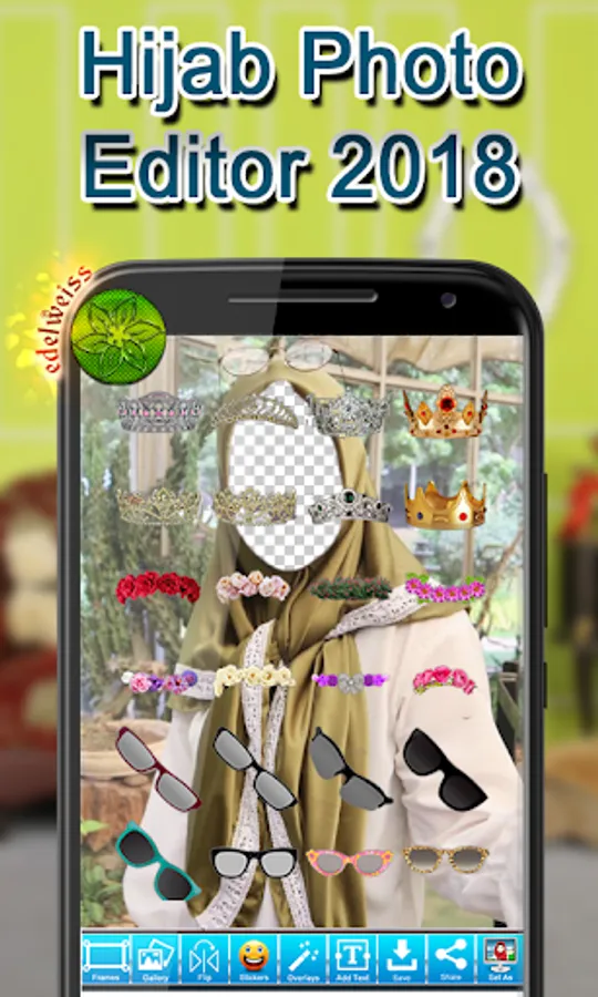 4. There are many stickers are suitable for the hijab, such as a crown, flower crowns, glasses, and other accessories for beauty hijab.
