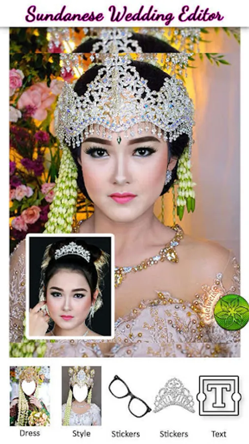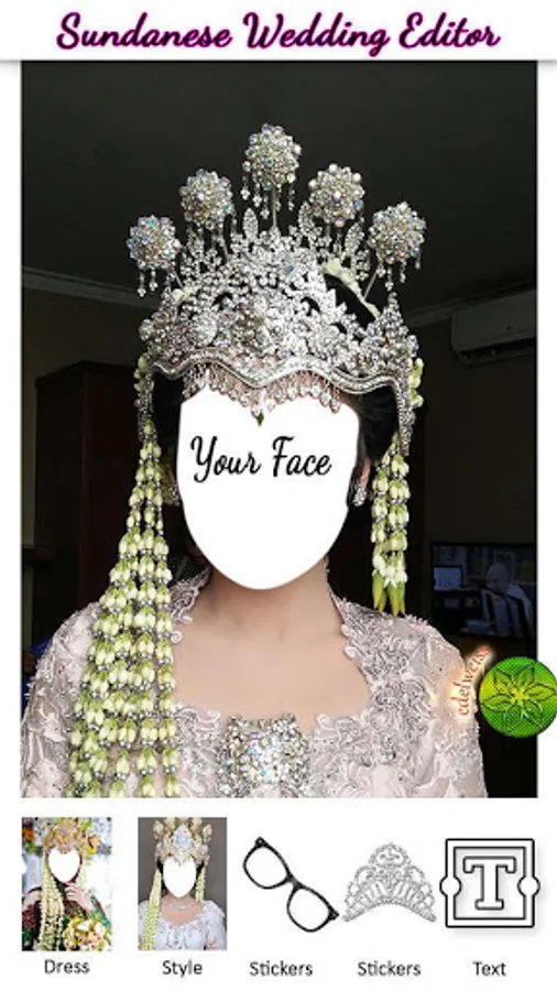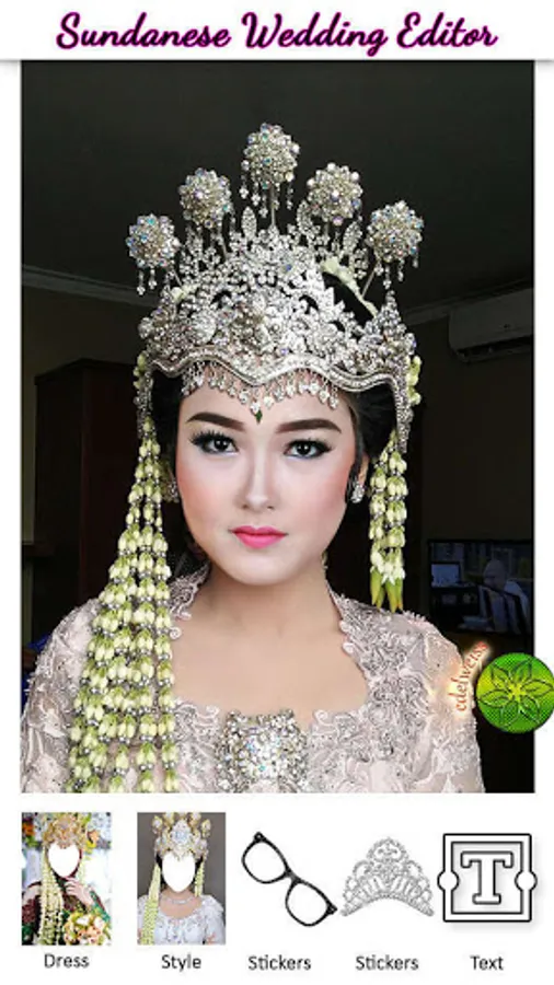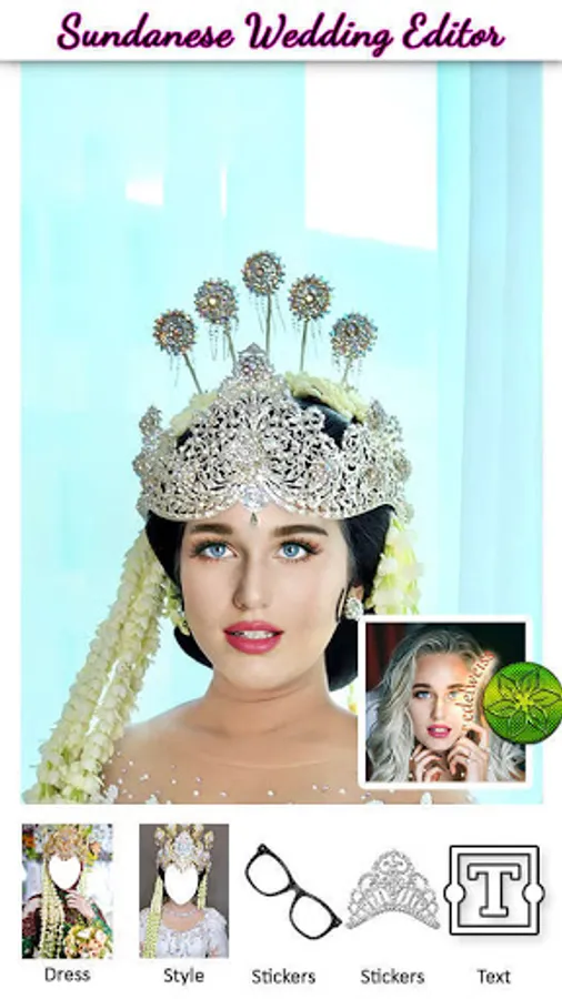 Photo Editor application to try modern & traditional Sundanese wedding dresses. An application that upholds the values of Indonesian culture by displaying traditional and modern Sundanese traditional wedding dresses. By using this application you can look beautiful with dresses designed by professional designers. You will look beautiful and attractive by installing a photo using this Sundanese traditional editor. Sundanese traditional wedding dress is synonymous with white and also jasmine flower decorations and also has a unique characteristic, namely a beautiful crown. By using a beautiful crown, you can add decorations or ornaments to the appearance.