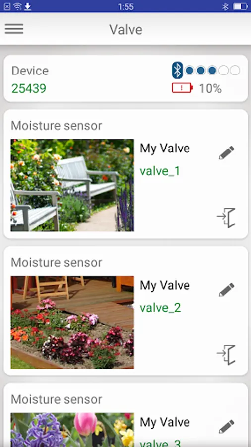 •Manage one or many controllers from a single app with the ability to name each controller, capture an image or uploaded from your gallery. You can replace the valve's photo and name to easily distinguish between them where you want to water.