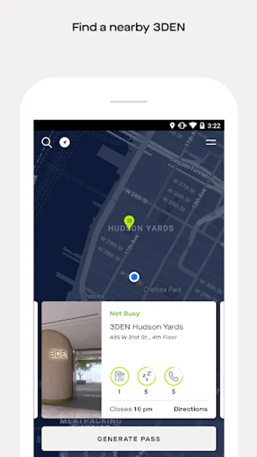 3DEN has space to focus, to unwind, or a little of both, for however long you need it. Comfy chairs, healthy snacks, and free coffee. Plenty of outlets to recharge your phone. Pristine bathrooms, private showers and nap pods to recharge yourself.