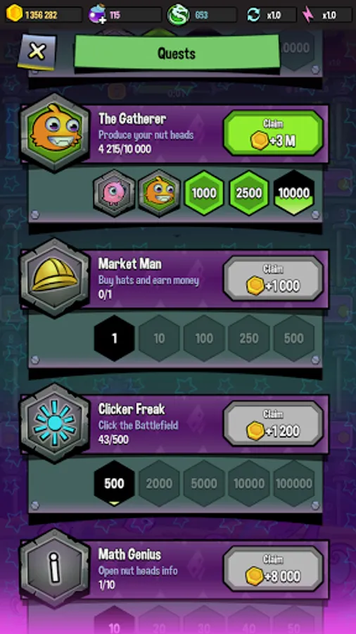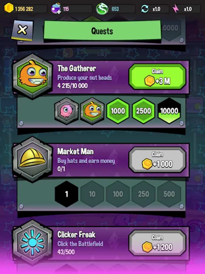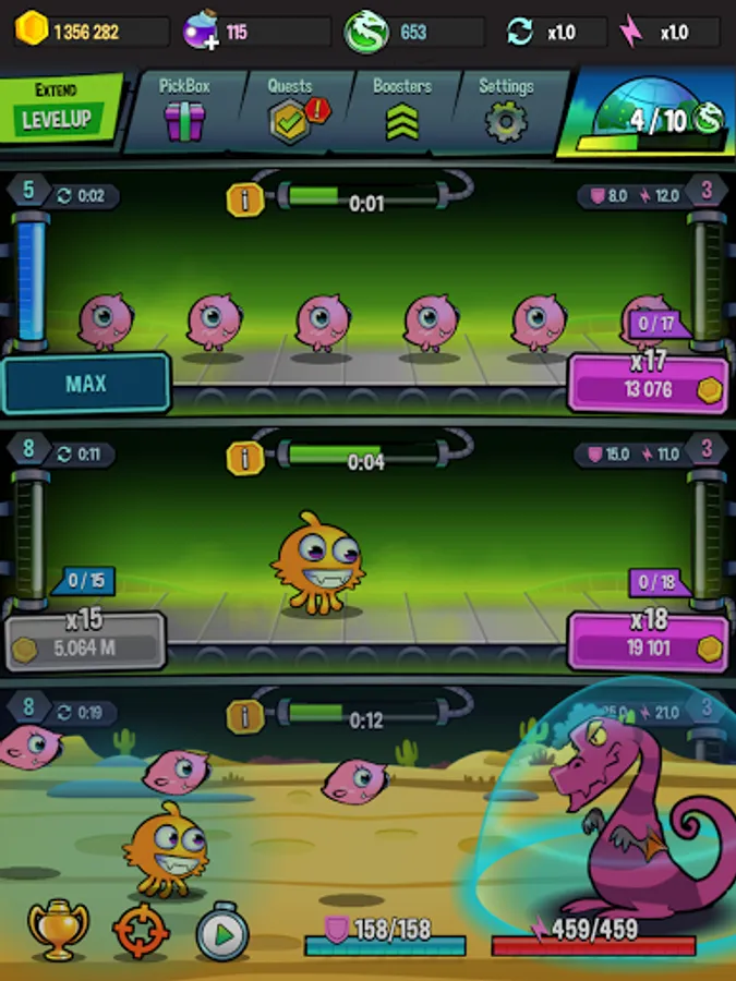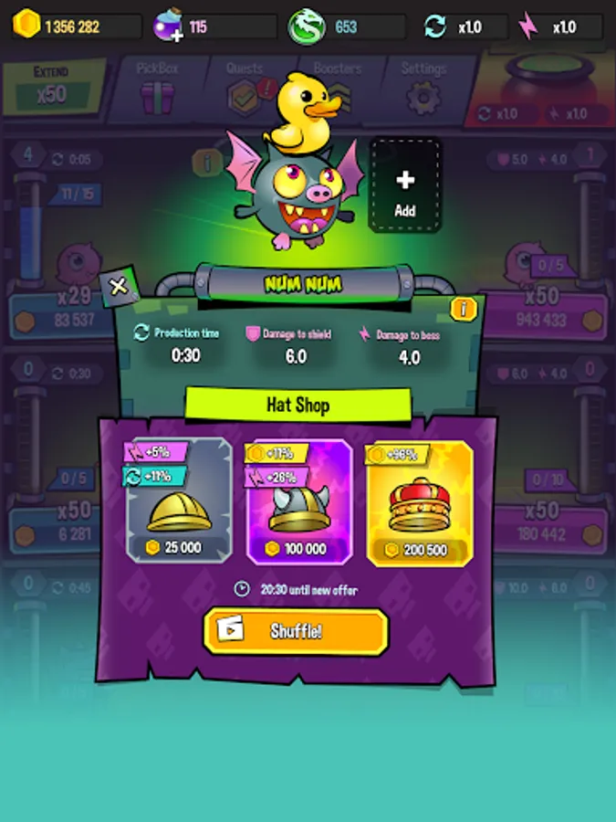 • Fight for the right. Visit the monster factory every day to check your coins and use them to empower the nut head’s health.