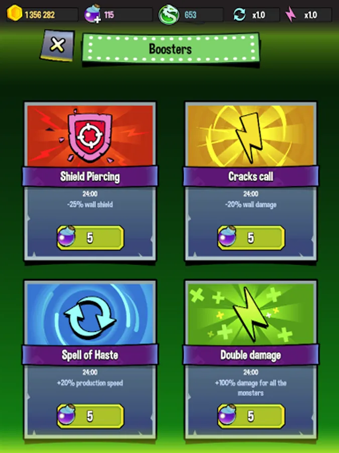 Game of Dragon: Use boosters such as spell of haste booster to give a hard time to dragons.