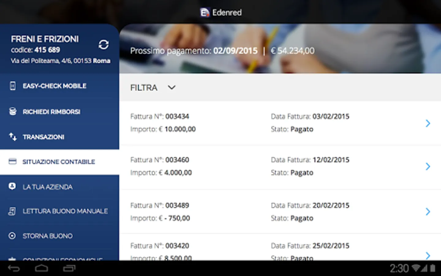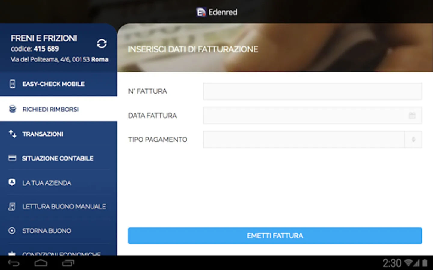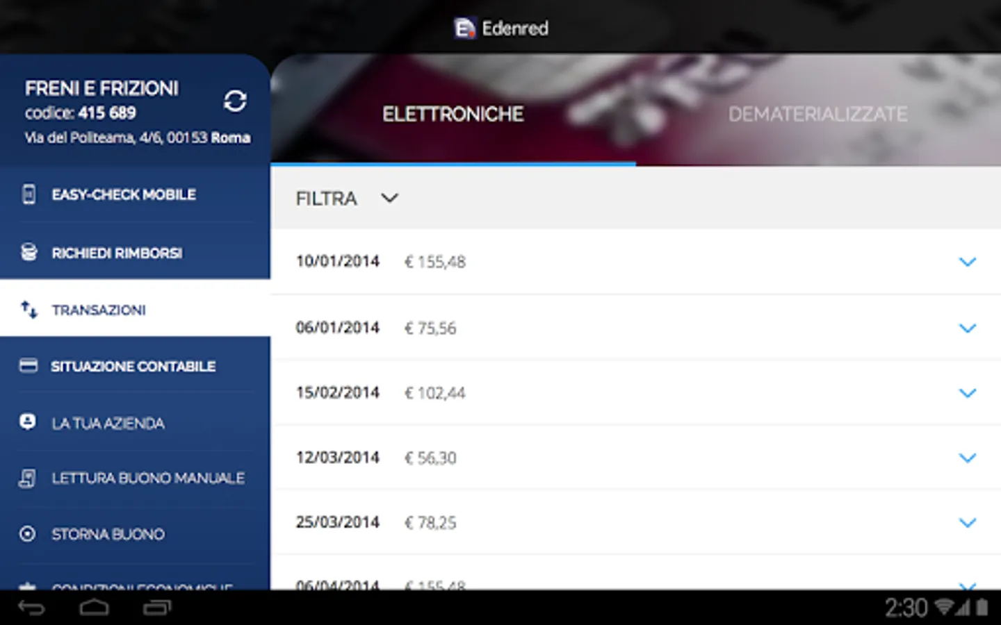 Edenred with FAST, directly from both smartphones that tablet, you can: check your transactions, request refunds and check the status of payments, such as a portal.