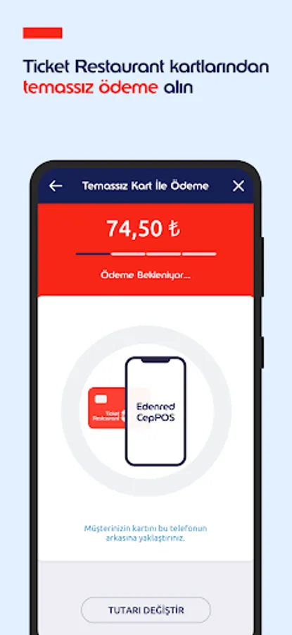• You can receive fast, hygienic and contactless mobile payments with QR Code (matrix code) or NFC technology from Ticket Restaurant Meal Card users' mobile phones with MyEdenred mobile application installed. NFC technology is only available on Android-based mobile phones.